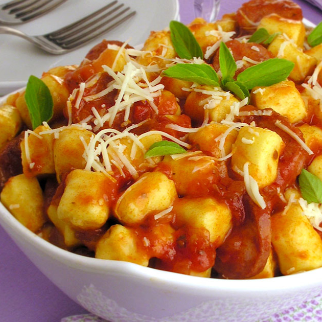 Nhoque de mandioquinha ao molho sugo