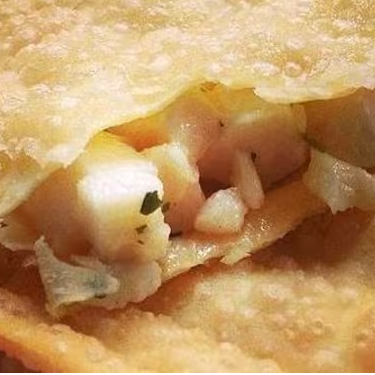 Pastel de Camarão 7 barbas com Requeijão cremoso. Obs: Não fazemos alterações de ingredientes.