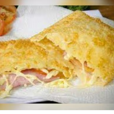 Pastel de Queijo mussarela, presunto e tomate com massa sequinha sequinha e crocante. Obs: Não fazemos alterações de ingredientes.