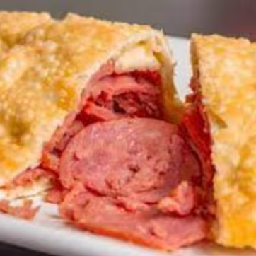 Pastel de Calabresa fatiada com Queijo Mussarela. Obs: Não fazemos alterações de ingredientes.