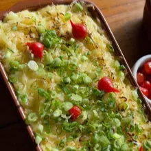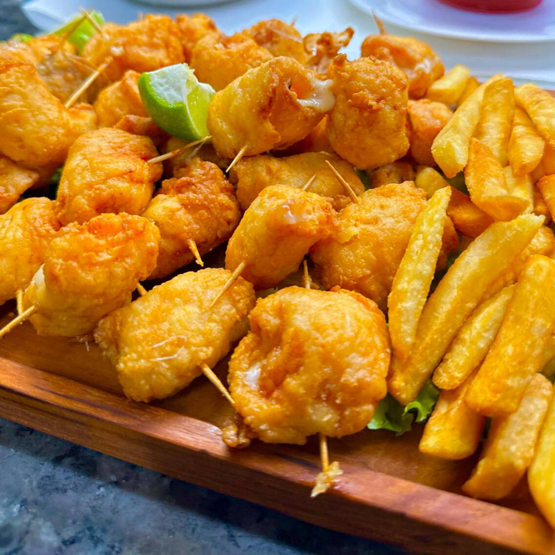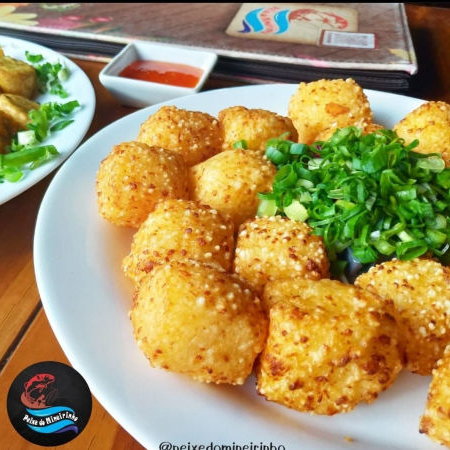 Empanado e frito, em iscas acompanha 150 gramas batata mais 2 molhos rose - contém espinhos