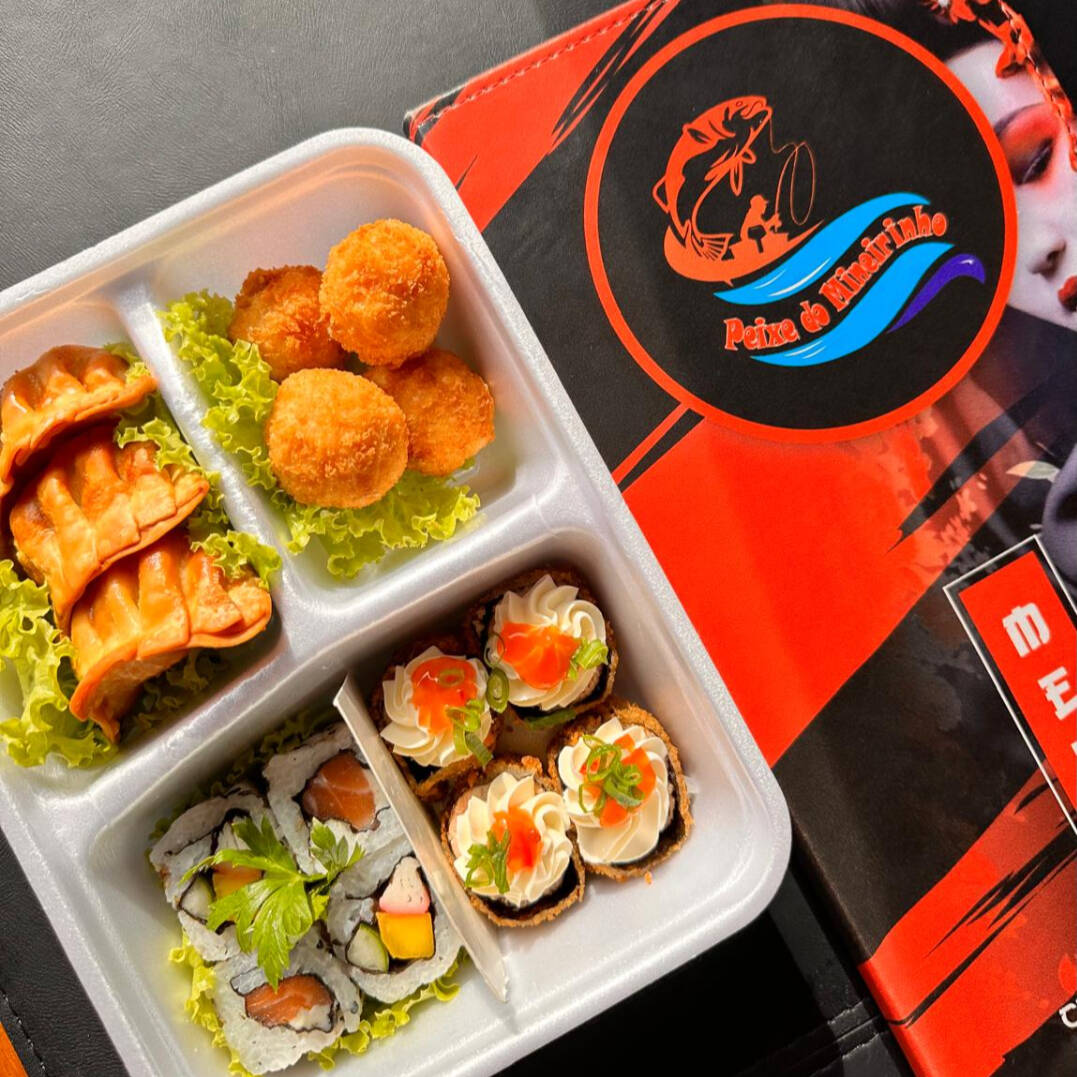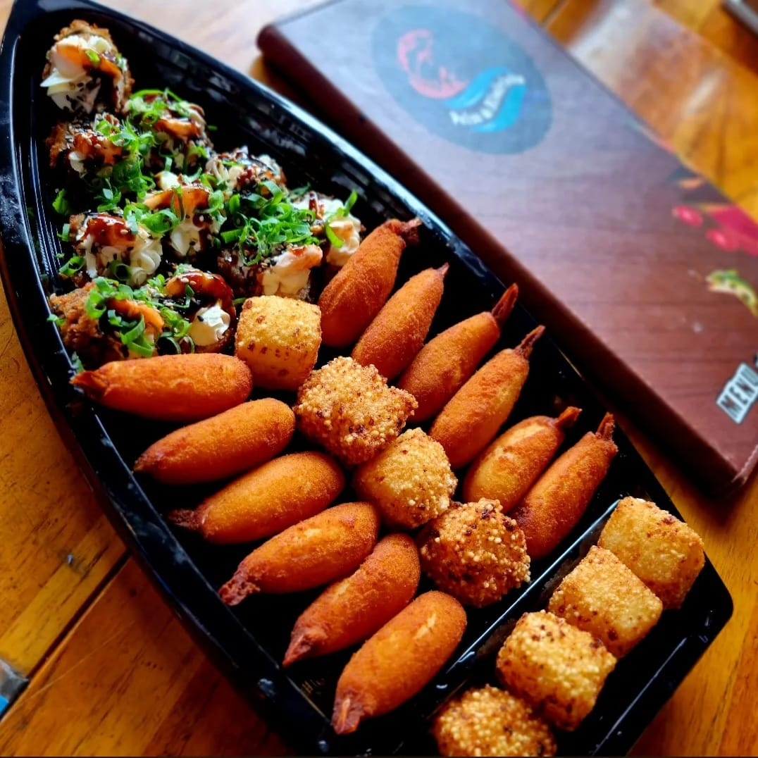 10 hot holl camarão, 10 hot roll tradicional, 04 rolinhos camarão, 04 bolinho ball