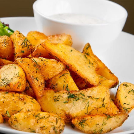 540 gramas de File de Merluza sem espinho empanado em massa leve e crocante acompanhado de 150 gramas de batata frita