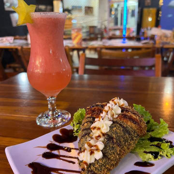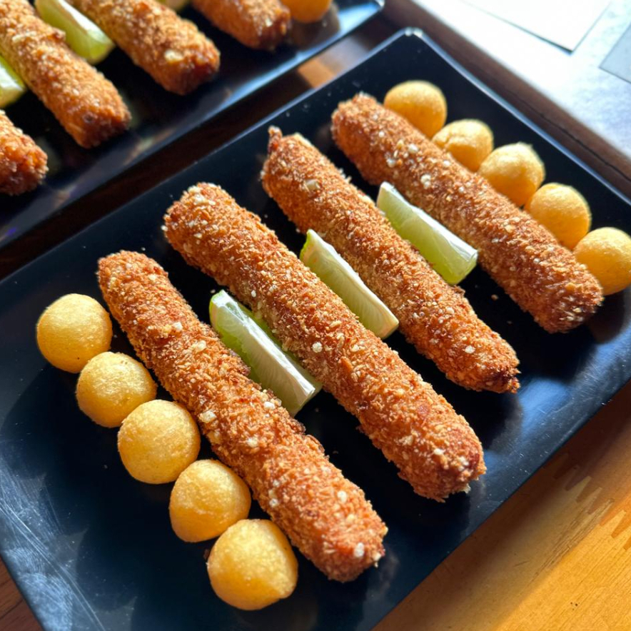 ENROLADINHO DE TILAPIA RECHEADO DE CARNE SECA E PROVOLONE EM UM EMPANADO SUPER CROCANTE COM CREAM CHEESE