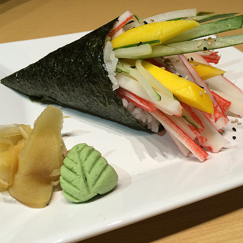 enrolado com arroz por fora e gergilim , penino manga e Kani