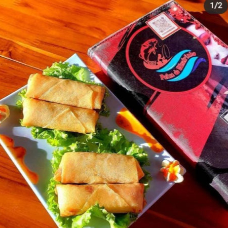 Deliciosos file de tilapia enrolado com calabreza empanados e frito Acompanha 150 gramas batata mais 2 molhos rose - 600g serve até 3 pessoas não contém espinhos