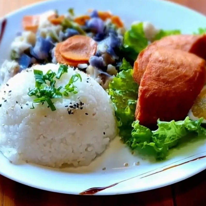 Legumes na manteiga e salmão grelhado. ( Acompanha 1 gohan)