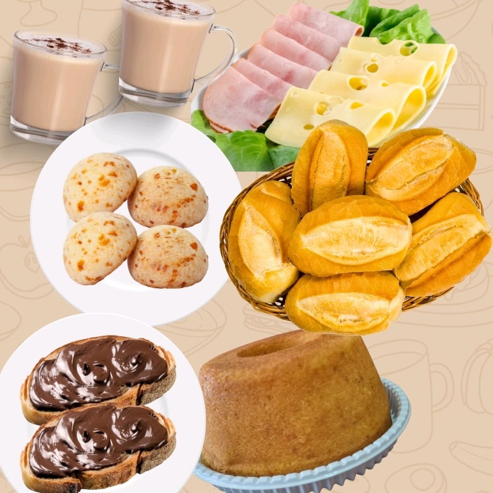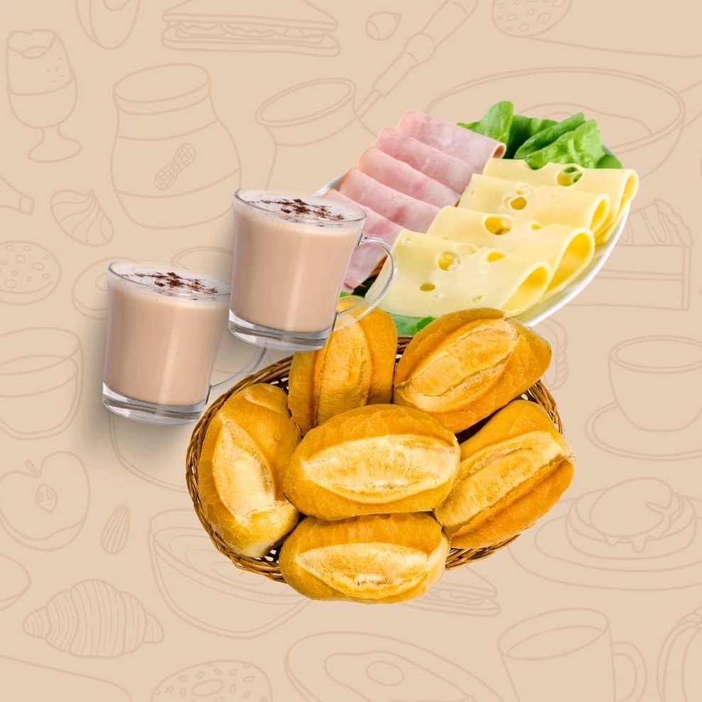 Combo - 2 Bebidas + 1 Bolo + 6 Pães + Frios