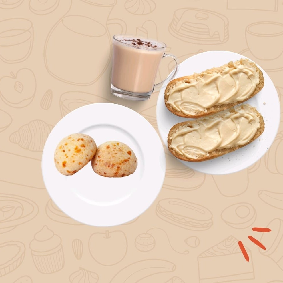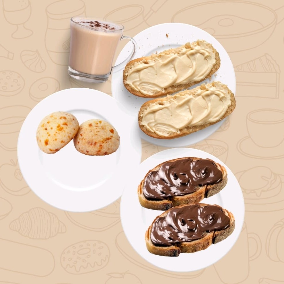 Combo - 1 Bebida + 2 Pães De Queijo + 1 Pão C Manteiga + 1 Pão Nutella