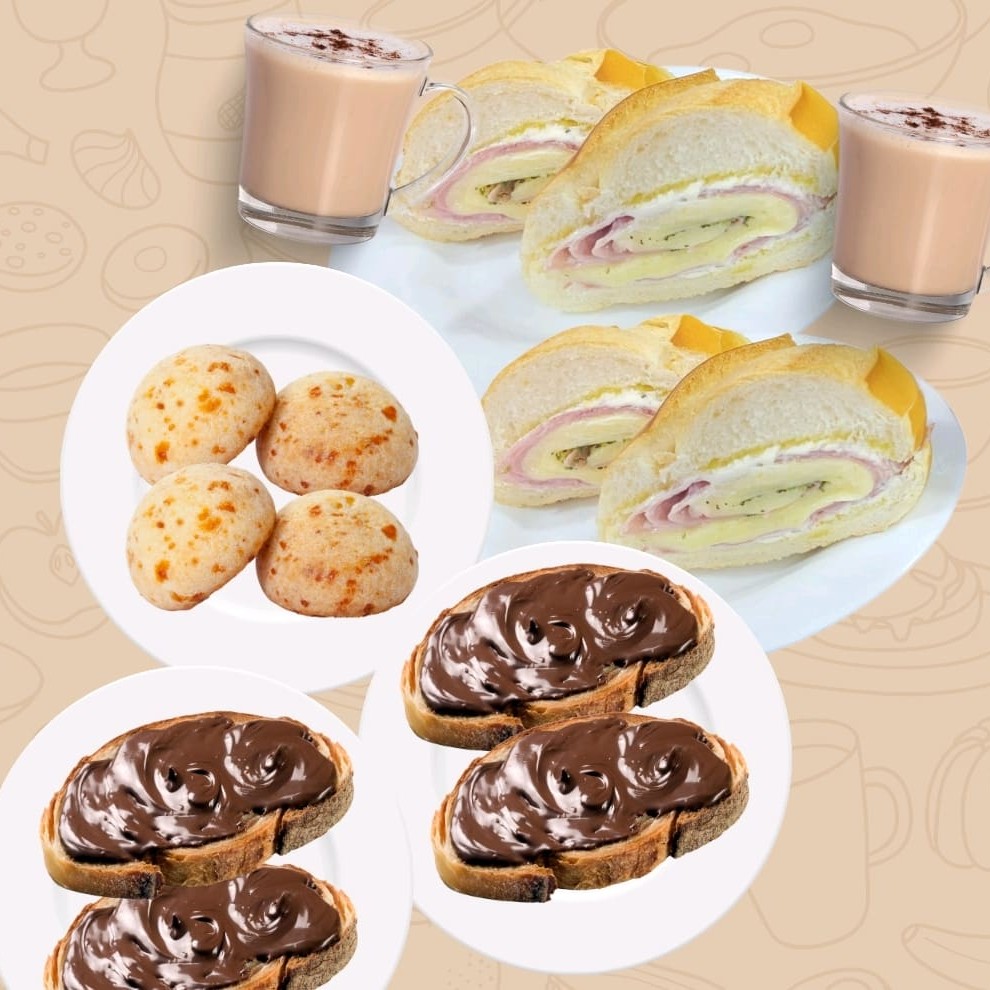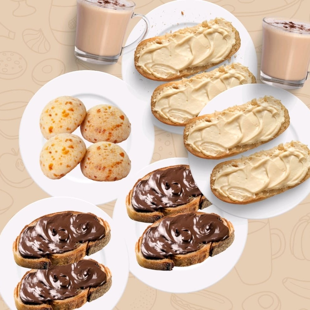 Combo - 2 Bebida + 4 Pães de Queijo + 2 Misto Quente + 2 Pão Nutella
