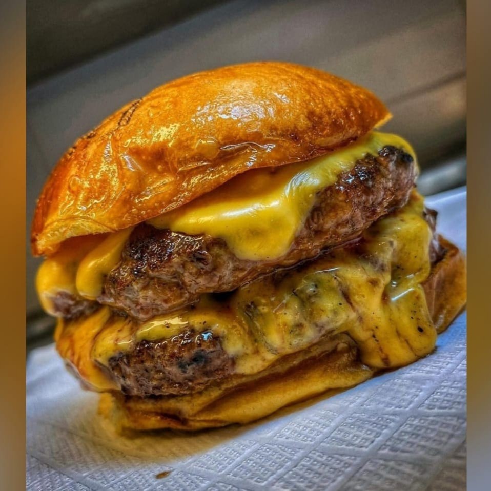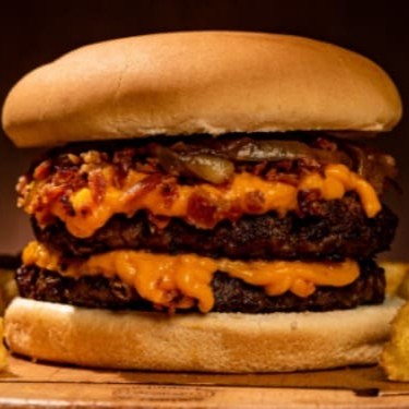Ele é composto por dois suculentos hambúrgueres de 170g, complementados por uma generosa camada de queijo cheddar derretido. Ele é valorizado com bacon em cubos, O toque final é o nosso exclusivo molho à base de cheddar, (Não acompanha molho)
