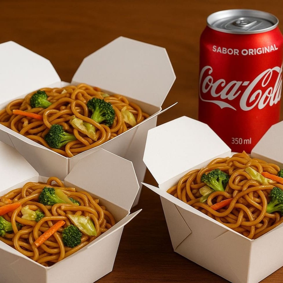 Desfrute do nosso irresistível Yakissoba, uma receita tradicional recheada com uma generosa porção de carne suculenta e frango tenro, harmonizados com legumes crocantes, preparados na medida certa para agradar o seu paladar. Este prato icônico da culinária oriental é meticulosamente servido junto com uma Coca-Cola de 350 ml, gelada na temperatura perfeita para proporcionar uma experiência refresca