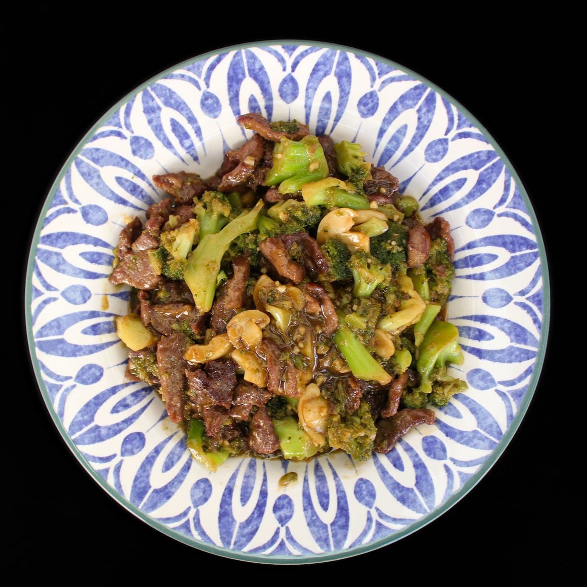 Carne fatiada em uma deliciosa combinação com brócolis e champignon.