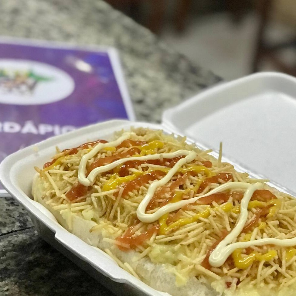 Delicioso hot-dog com uma salsicha suculenta no molho, acompanhado de um cremoso purê. Adicionamos milho, ervilha e vinagrete para trazer um toque de frescor. A batata palha adiciona uma textura irresistível. Para finalizar, maionese, ketchup e mostarda, garantindo uma explosão de sabores.