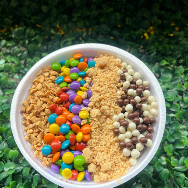 Monte sua tigela de açaí perfeita! Escolha 5 complementos para deixar o seu açaí ainda mais delicioso. Todos os adicionais inclusos vão diretamente na tigela, para que você aproveite cada mordida recheada de sabor!" OS ITENS NÃO SÃO ENVIADOS SEPARADOS . Itens do campo 'adicionais extras' são enviados separadamente.