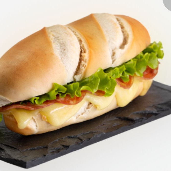 nossa baguete acompanha pate de frango , mussarela , alface e tomate