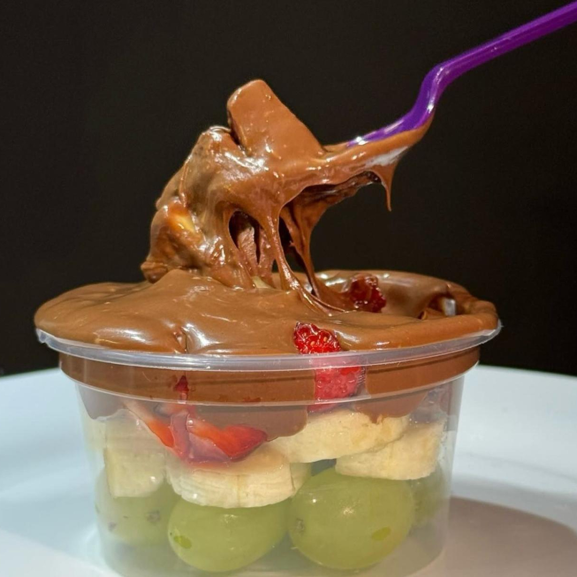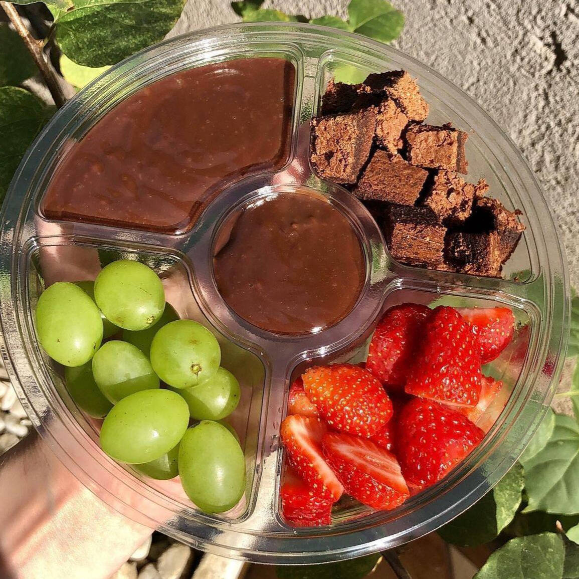 preparado com nutella, uvas verdes sem semente , brownie e creme de ninho