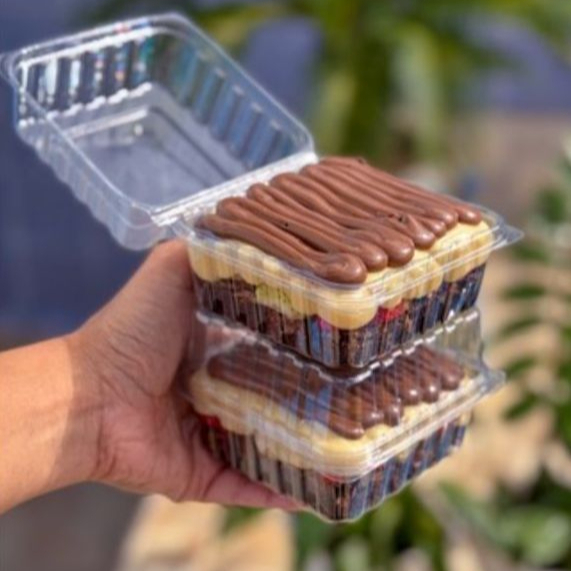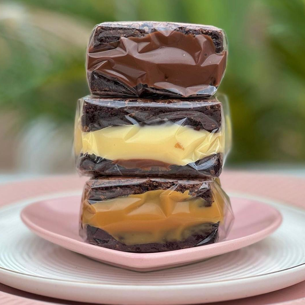 nosso brownie e simplismente maravilhoso molhadinho por dentro e por fora com casquinha ... vc pode escolher o sabor q deseja e colocar na observaçao , nutella , ninho ou doce de leite.