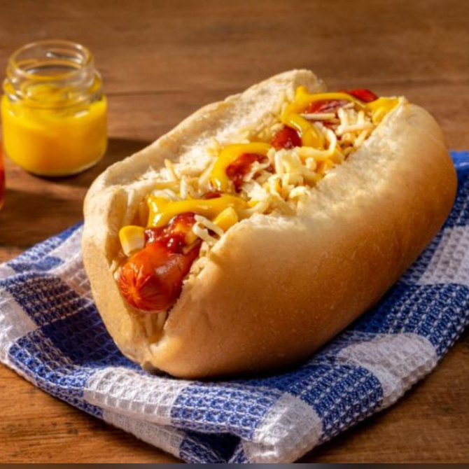 nosso dog acompanha salsicha, batata palha , mostarda ,maionese, ket chup e molho grill
