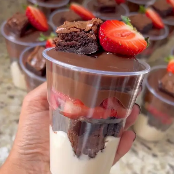 Escondidinho De Brownie Com Morangos Frescos