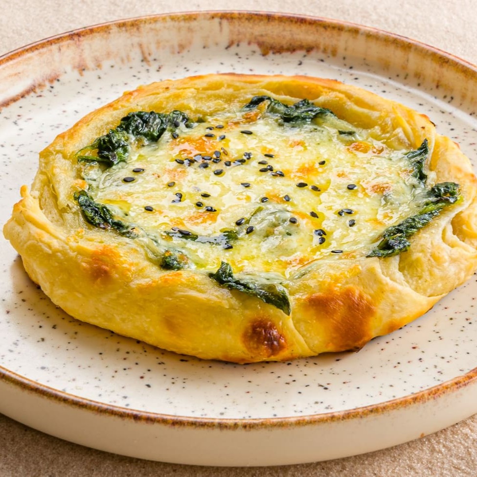 Saborosa esfiha de espinafre, preparada com uma massa macia e levemente crocante. Recheada com espinafre fresco e nutritivo, harmonizado com queijo canastra, famoso por seu sabor. Para finalizar: um toque de gergelim negro, que agrega um sabor especial, uma combinação que encanta os paladares mais exigentes!