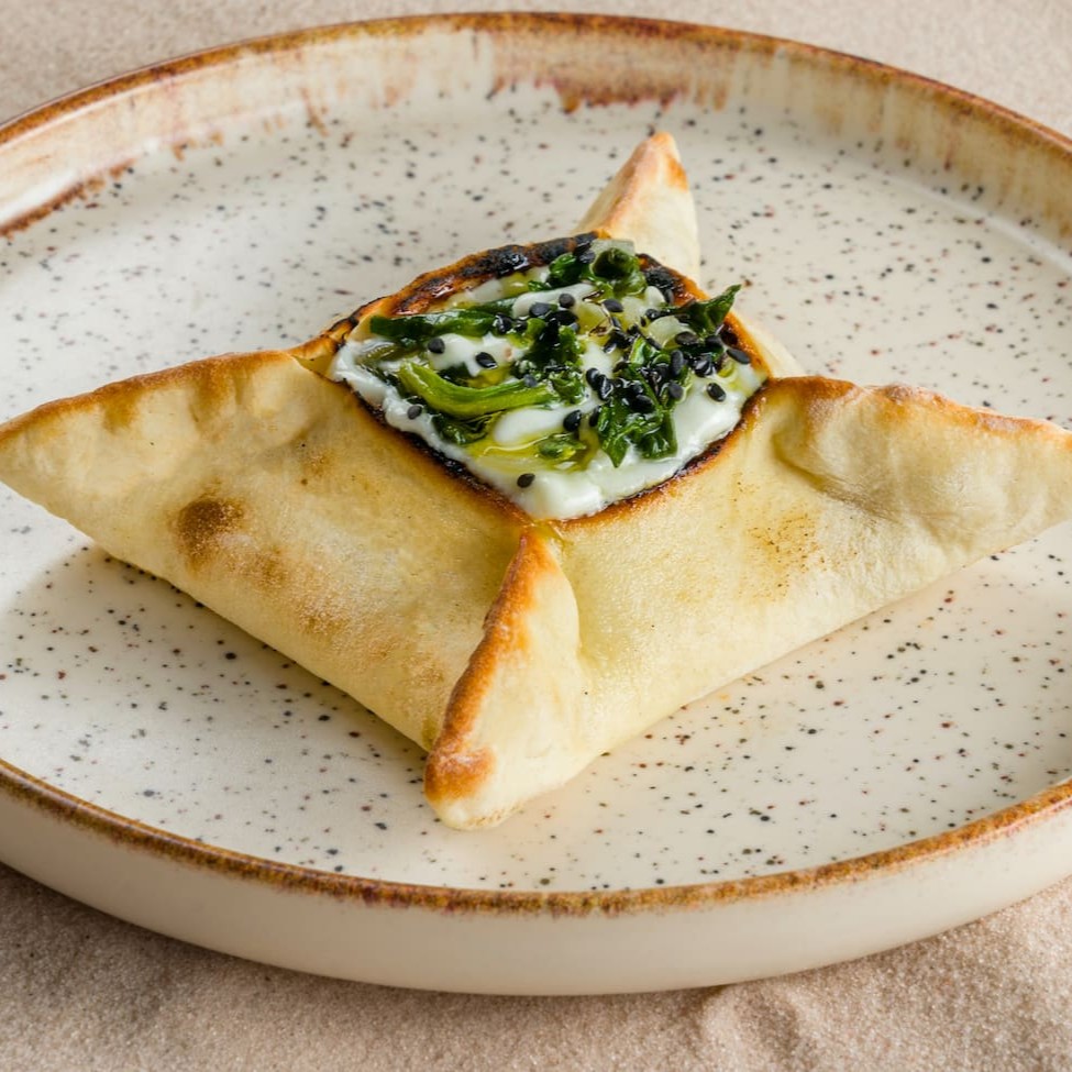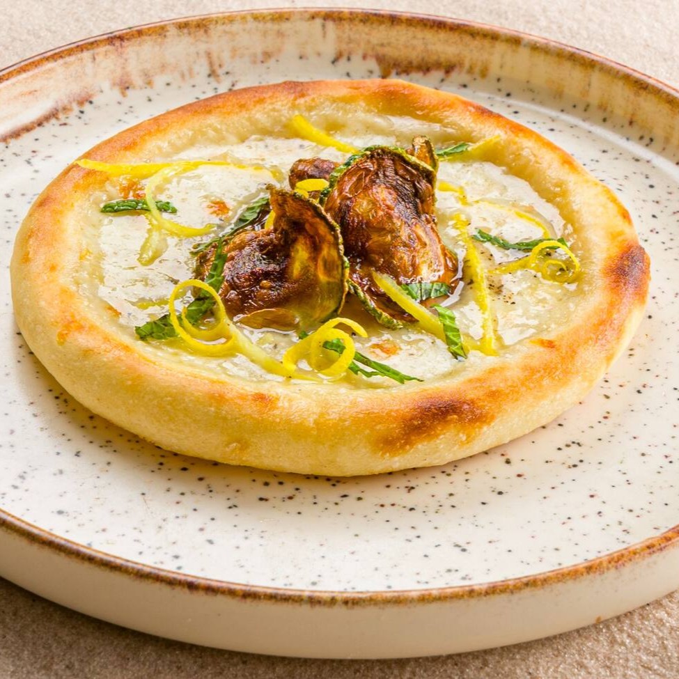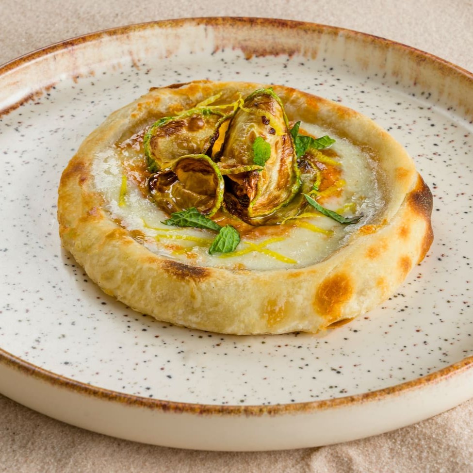 Exuberante Esfiha aberta, recheada com o irresistível queijo Maratimba, conhecido por sua cremosidade e sabor singular. Adicionamos ao recheio um toque de pepe, dando um sabor inconfundível ao prato. A abobrinha crocante, complementa a combinação perfeita. Finalizamos com raspas de limão siciliano, que trazem um frescor cítrico, e um toque de hortelã, que agrega uma nota refrescante.