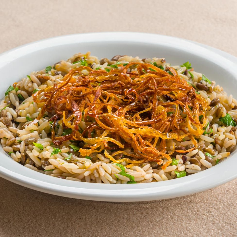 Apresentamos um prato perfeito para experimentar, o arroz é cozido, aliado a lentilhas, formando uma combinação de sabores. Para enriquecer ainda mais o prato, adicionamos um toque especial: cebola crispy.