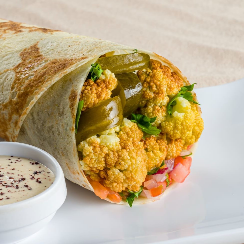 O 'Kebab de Couve-flor' é uma obra-prima culinária, composto por pedaços suculentos de couve-flor cuidadosamente fritos até a perfeição crocante. Acompanhado por um vinagrete de tomate refrescante, que adiciona uma nota de acidez deliciosa. Seu paladar será agradavelmente surpreendido por picles crocantes e salsinha fresca, adicionando uma pitada de ousadia ao prato. Para finalizar, um generoso a