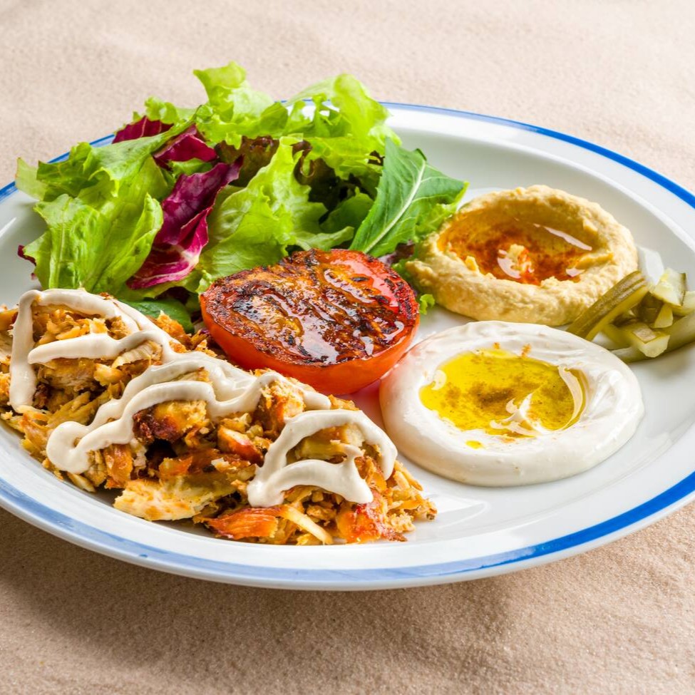 Desfrute de fatias suculentas de frango, marinadas em especiarias, proporcionando um sabor único e inesquecível. Acompanha um fresco mix de folhas verdes, tomate assado e picles, homos adiciona uma cremosidade especial. Para completar, torradas crocantes e o pão Pita da casa. Uma combinação perfeita para quem busca uma refeição nutritiva e saborosa.