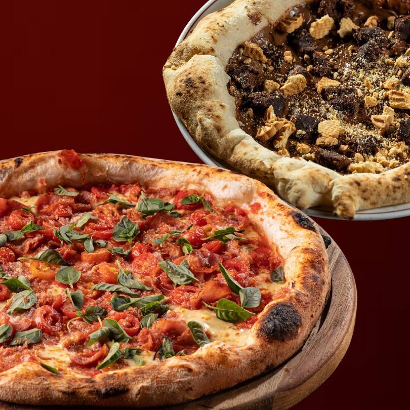 Combo especial e delicioso! Escolha seu sabor de pizza individual favorita e leve a nova pizza doce de Nutella, brownie e butter cookies para saborear