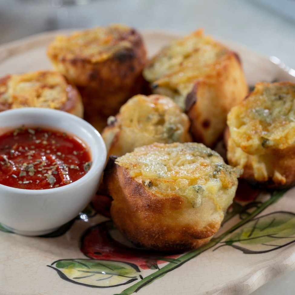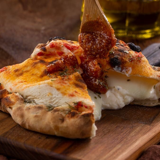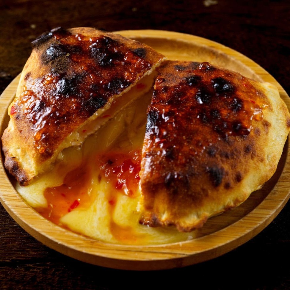 Delicioso rolinho feito com a nossa massa de pizza de longa fermentação, recheado com caccio cavalo Bonfiore, Catupiry, provolone e gorgonzola. Para acompanhar, um fantástico molho de tomate