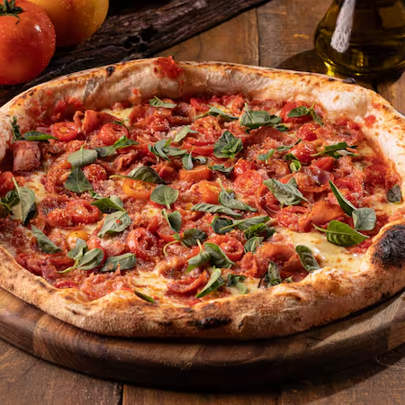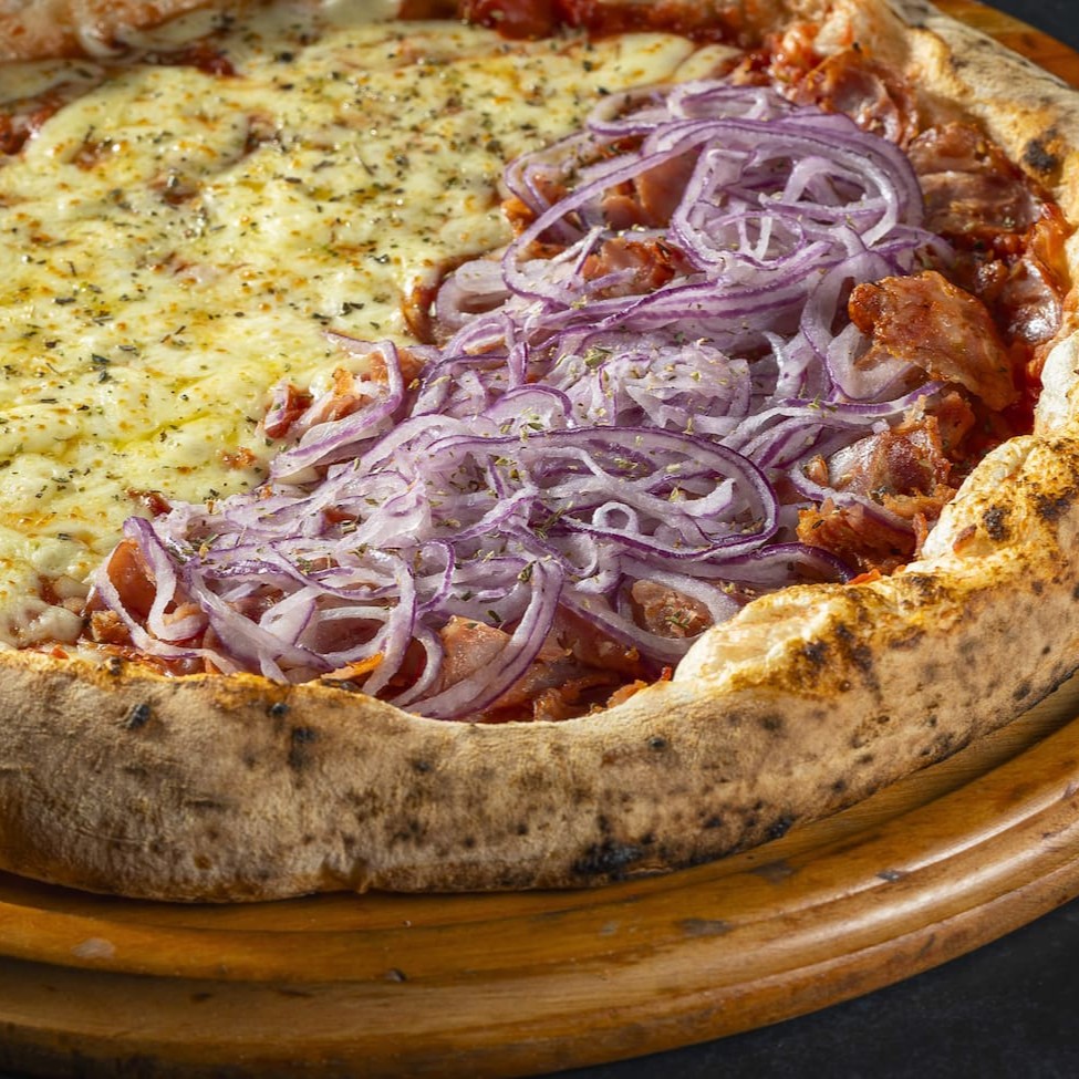 Pizza grande, requintada e de dois sabores de Pizza distintos irá encantar o seu paladar. Uma metade é dedicada à clássica Pizza de Margherita, ornamentada com mozzarella fresca, tomates suculentos e um toque de manjericão, que a torna uma verdadeira celebração de sabores italianos tradicionais. A outra metade de Pizza apresenta a sofisticação da Zucchine Gratinate Al Parmigiano, uma combinação de abobrinha delicadamente gratinada e parmesão, proporcionando uma experiência gastronômica única. Desfrute deste manjar em 8 pedaços de Pizza generosos. Uma delícia para todos os amantes de pizza, disponível com frete grátis durante a promoção do mês da pizza na nossa loja! Pizza a opção perfeita para duas pessoas, nada como uma Pizza para comemorar datas especiais como Dia dos Namorados, Festa Junina e muito mais, com quem vai dividir sua Pizza hoje.