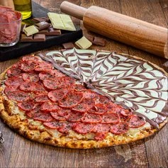 Pizza grande com 8 pedaços, escolha 2 sabores!