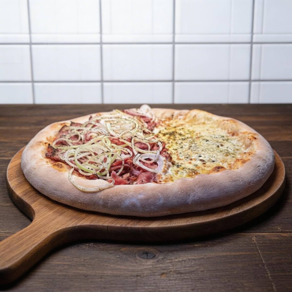 1 Pizza [8 Fatias] 1/2 Mussarela1/2 Calabresa