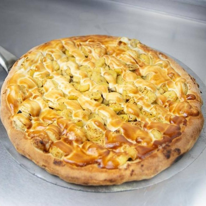 Pizza saborosa com calabresa, cebola fatiada, queijo mussarela e um toque de orégano.