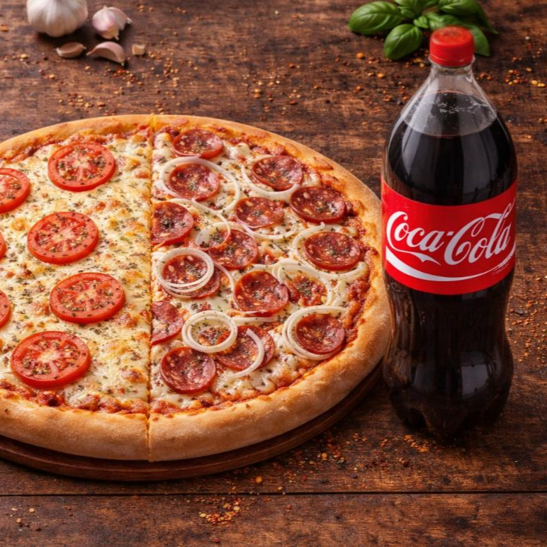1 Pizza Meia Mussarela Meia Calabresa+ 1 Coca 2 Litros