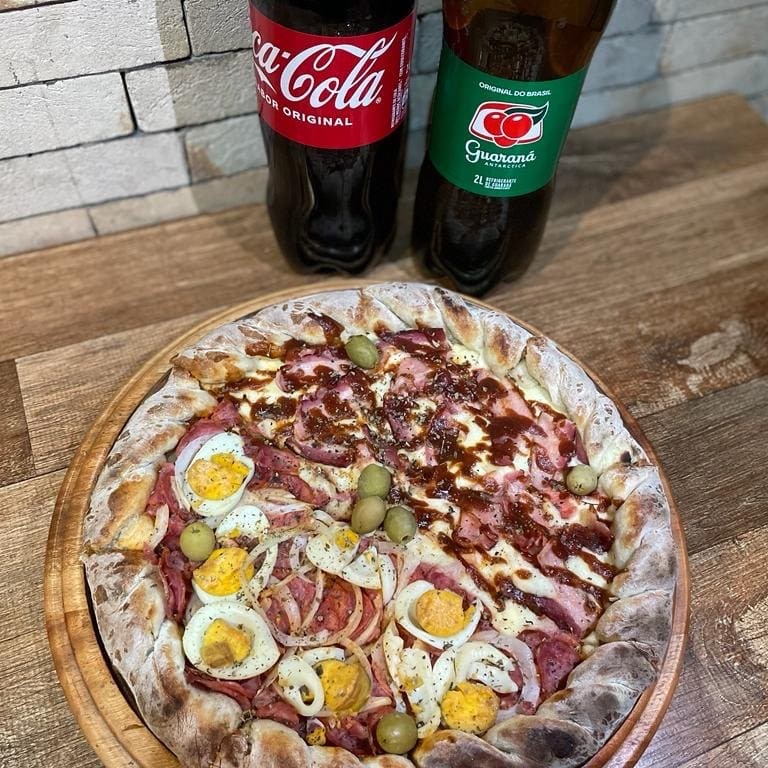 Meia Mussarela Meia Calabresa, cebola e azeitona.