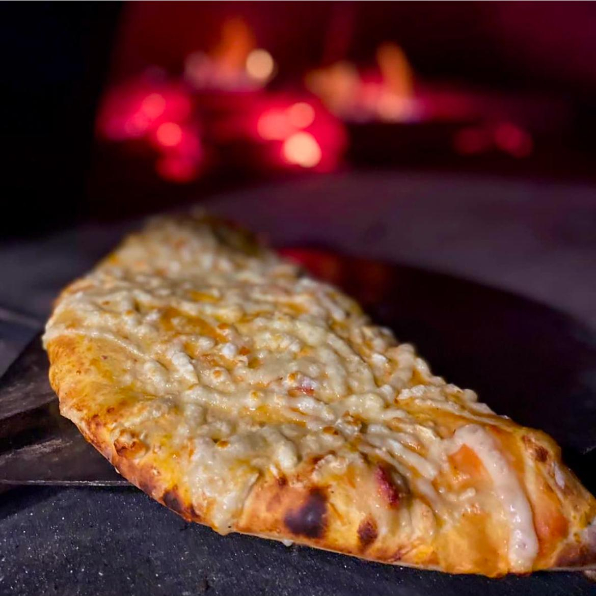Massa artesanal de fermentação natural , molho de tomate artesanal, Meia frango e Catupiry e Meia Calabresa e cebola.