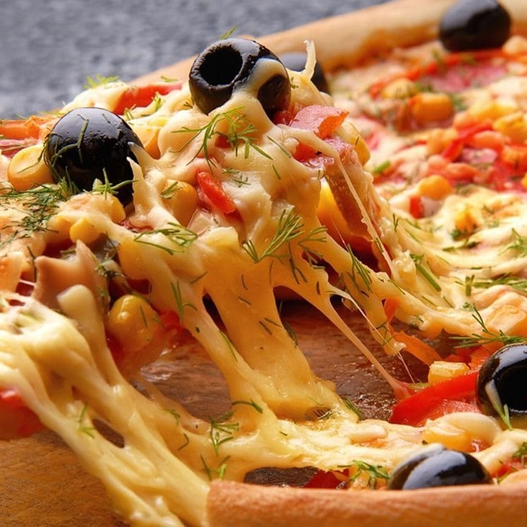 Massa tradicional de fermentação natural, molho artesanal de tomate, presunto, tomate, mussarela e azeitona.
