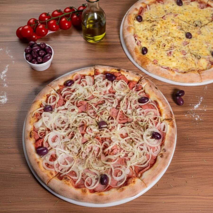 2 Pizzas Grandes - Portuguesa(35cm) + 1 Calabresa(35cm)