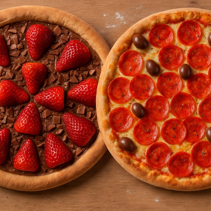 Pizza individual + pizza individual doce + refri 600ml