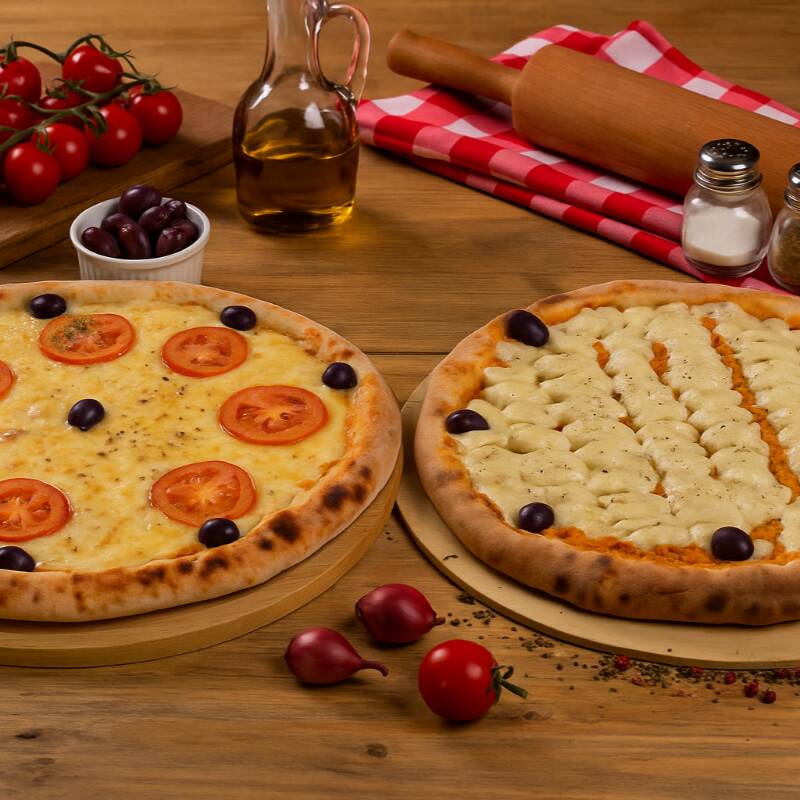 2 Pizzas Grandes - 1 Pizza Mussarela(35cm) + 1 Pizza Calabresa(35cm)