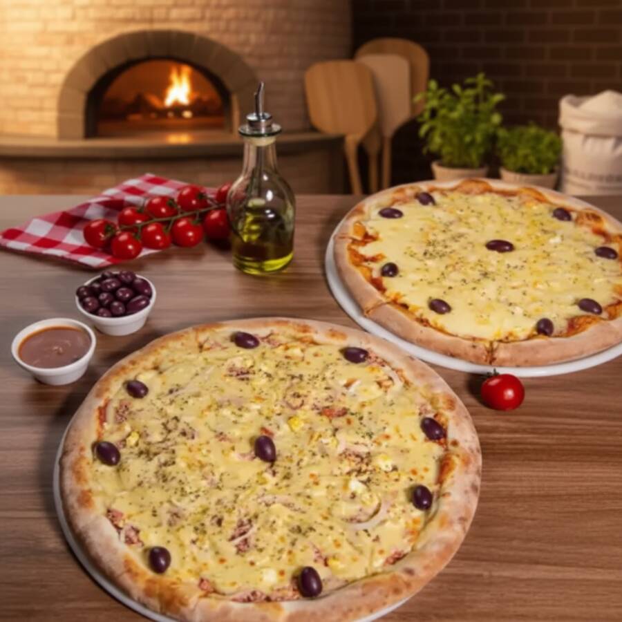 2 Pizzas Grandes - 1 Toscana(35cm) + 1 3 Queijos(35cm)