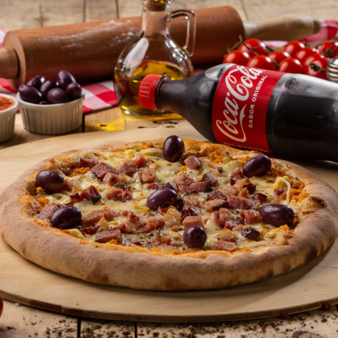Pizza grande 8 pedaços + Guaraná Antarctica 1,5l Grátis.