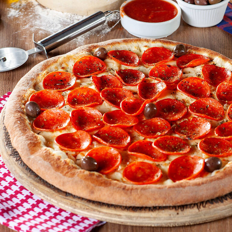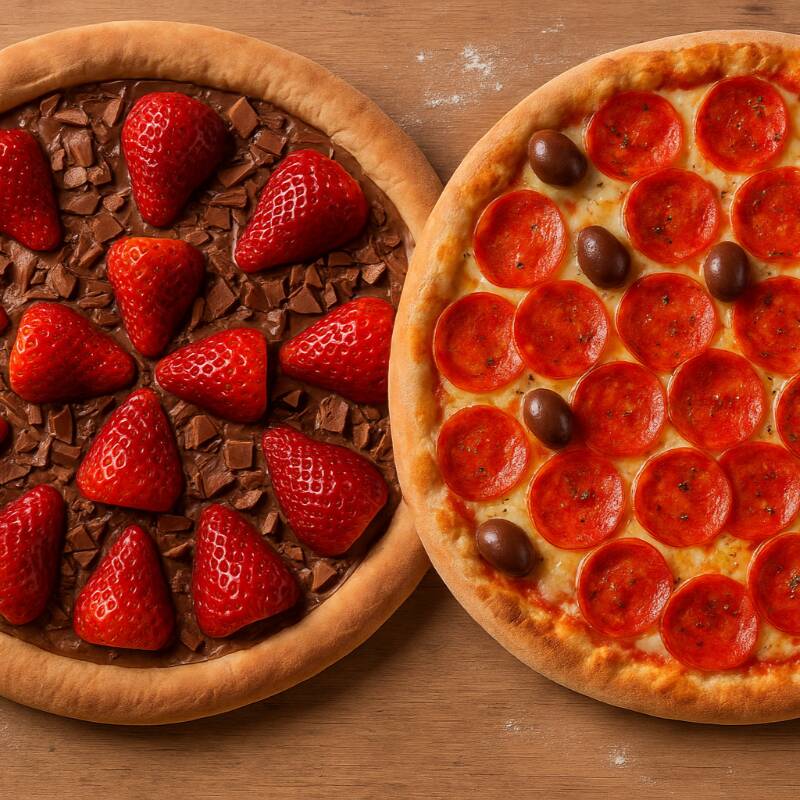 1 Pizza Grande + 1 Broto - 1 2 Pepperoni(35cm) 1 2 Frango Com Catupiry(35cm) + 1 Sensação Broto(25cm)