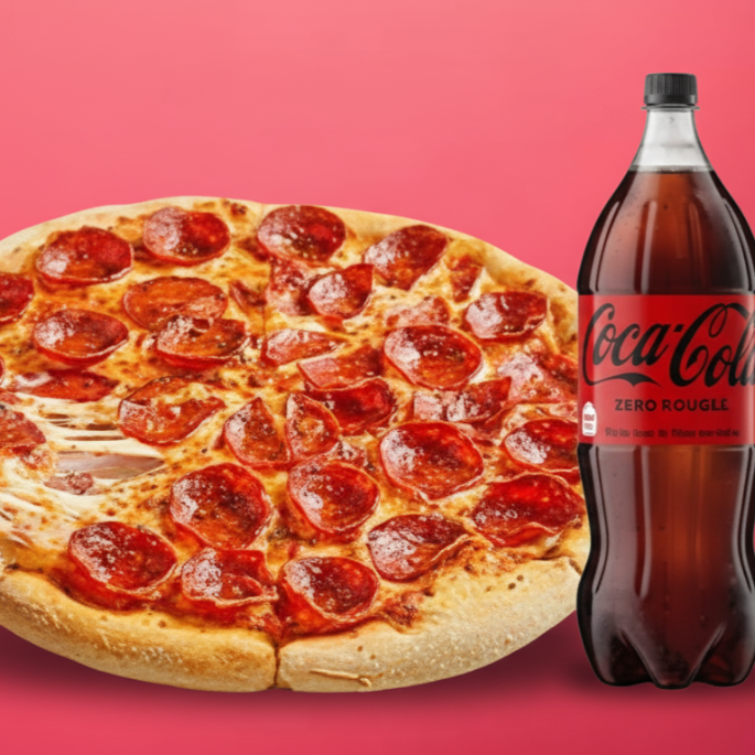 A escolha perfeita para compartilhar! Uma pizza grande com massa artesanal e ingredientes selecionados, acompanhada de um refrigerante geladinho para completar a experiência. Ideal para curtir momentos entre amigos ou família com muito sabor e praticidade.