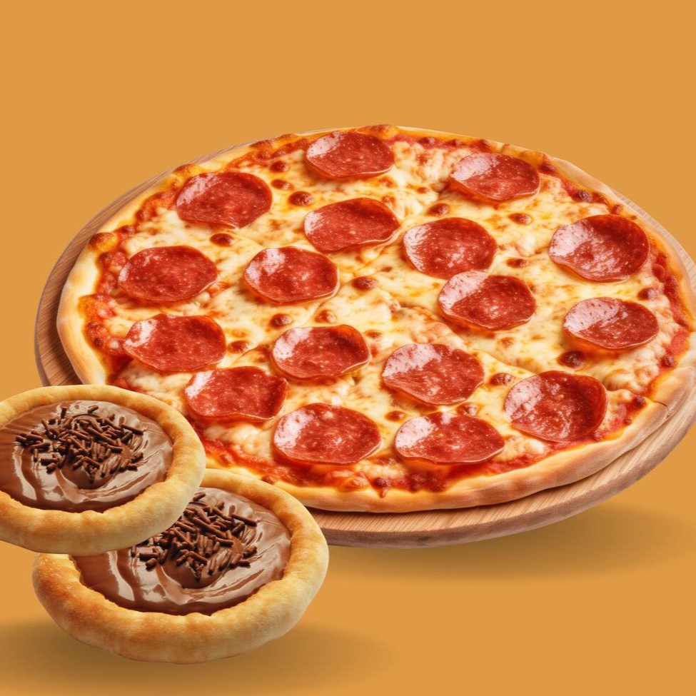 Saborei uma pizza deliciosa e 2 esfihas de chocolate