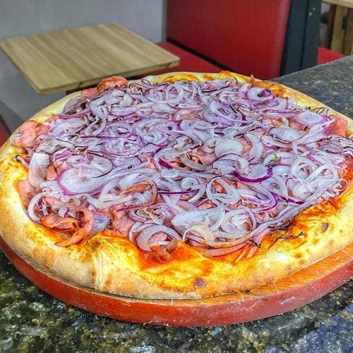 Saboreie a combinação perfeita da calabresa defumada e cebolas douradas sobre nossa massa crocante. Uma escolha clássica que agrada a todos os paladares!