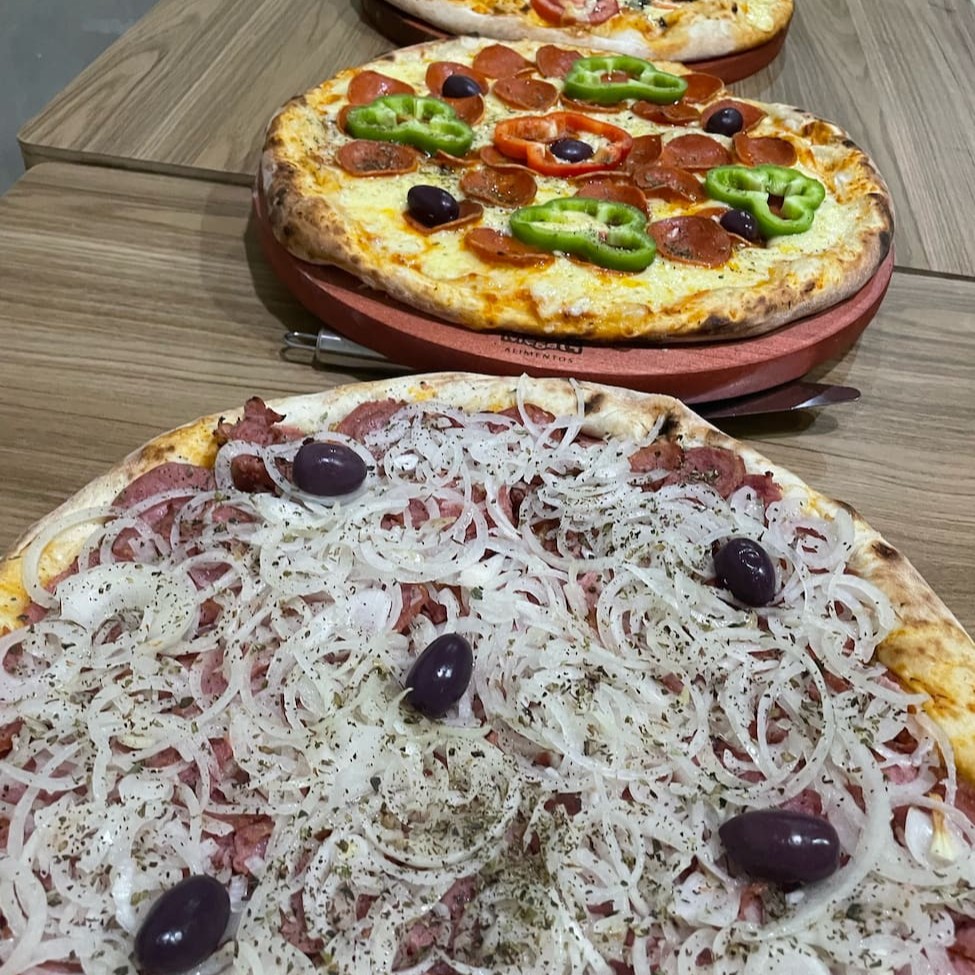 Três pizzas deliciosas por um preço especial! Escolha seus sabores favoritos e aproveite com a familia e amigos. Qualidade e sabor garantidos!