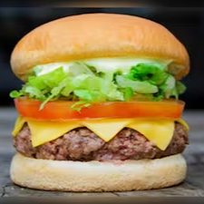 Pão tradicional, Hamburguer 120g, Fatias de Queijo Cheddar, Alface americana, Tomate, Bacon fatiado e Maionese Verde